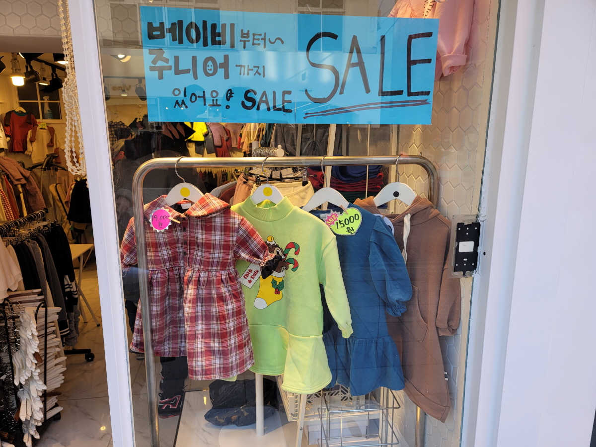 This district is filled with many stores, including stores professionally selling items to adults big and tall, and another district is for baby clothes. There is of course a large majority of stores for Korean adult sizes as well.