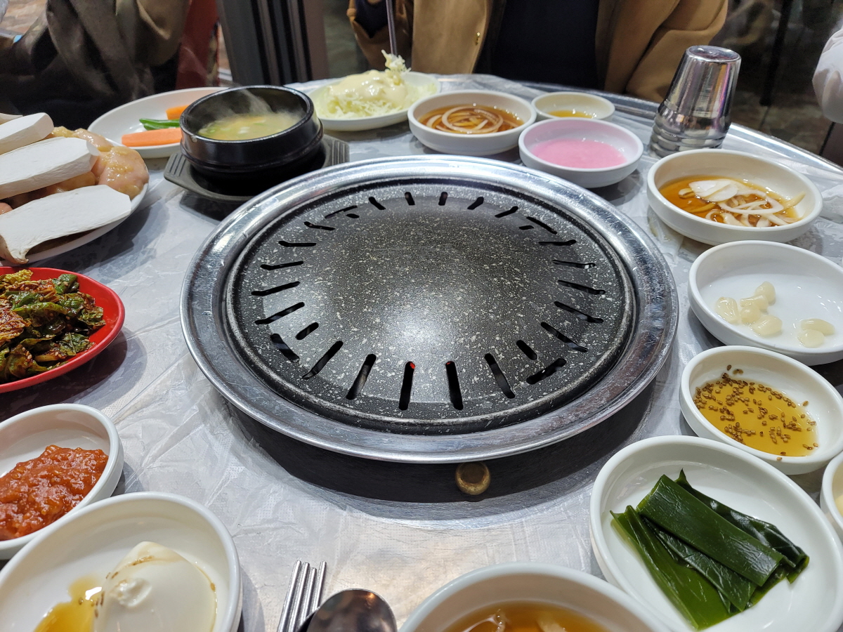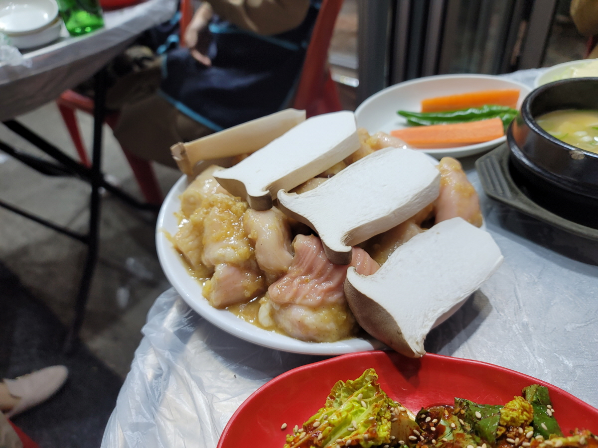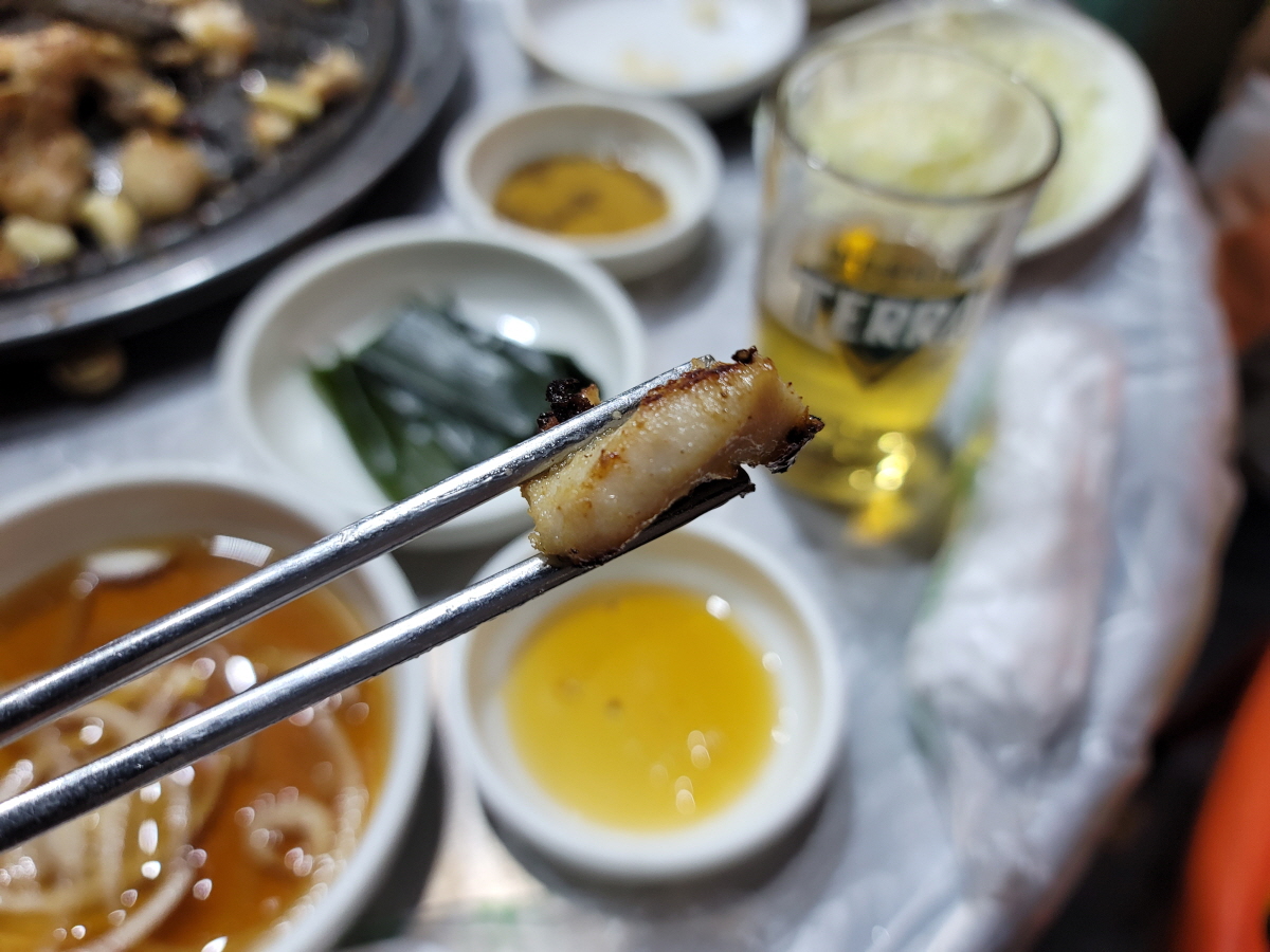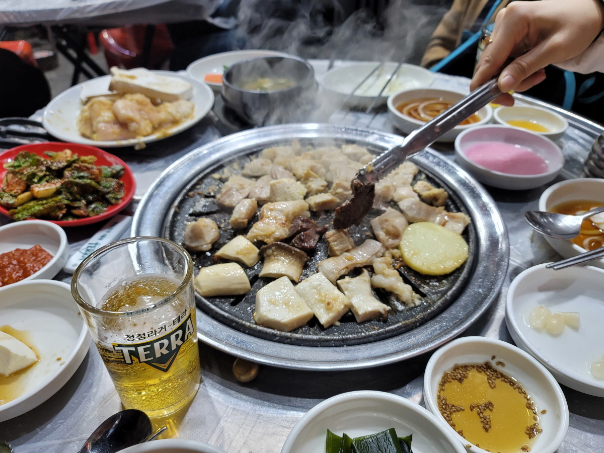 곱창전골 맛집인건지 주변 분들은 곱창전골을 드시는 것 같았지만 저희는 조쉬가 탕을 좋아하지 않아 곱창전골은 선택지에서 제외했습니다. 소금구이와 돌판양념 중에서는 개인적으로 소금구이가 더 맛있었던 기억에 이번에는 소금구이 대자로 하나 주문했어요. (4명)