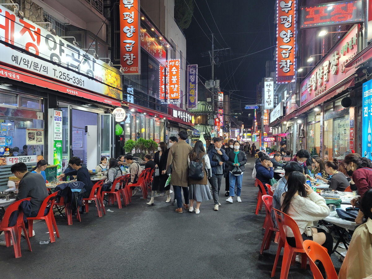 부평시장의 한 도로를 끼고 마주한 세 곳의 부평 양곱창은 모두 같은 가게인데요, 항상 사람들로 바글거리고 있어 외관부터 이미 맛없기는 힘들겠다는 느낌이 옵니다. 오랜 시간 손님이 많은 데는 이유가 있는 법이죠!