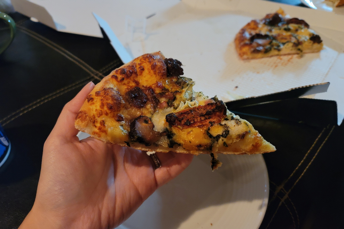도미노 피자 스타 셰프 컬렉션 둘 모두 오븐에 오래 구운 토마토처럼 맛과 향이 강한 토마토와 표고버섯이 들어간 게 특징이다. 나는 표고버섯도, 구운 토마토의 상큼한 맛도 좋아하기 때문에 피자에서 꽤 존재감을 뽐내는 표고버섯과 토마토 모두 맛있게 먹었지만 이건 성향에 따라 조금 갈릴지도 모르겠다.