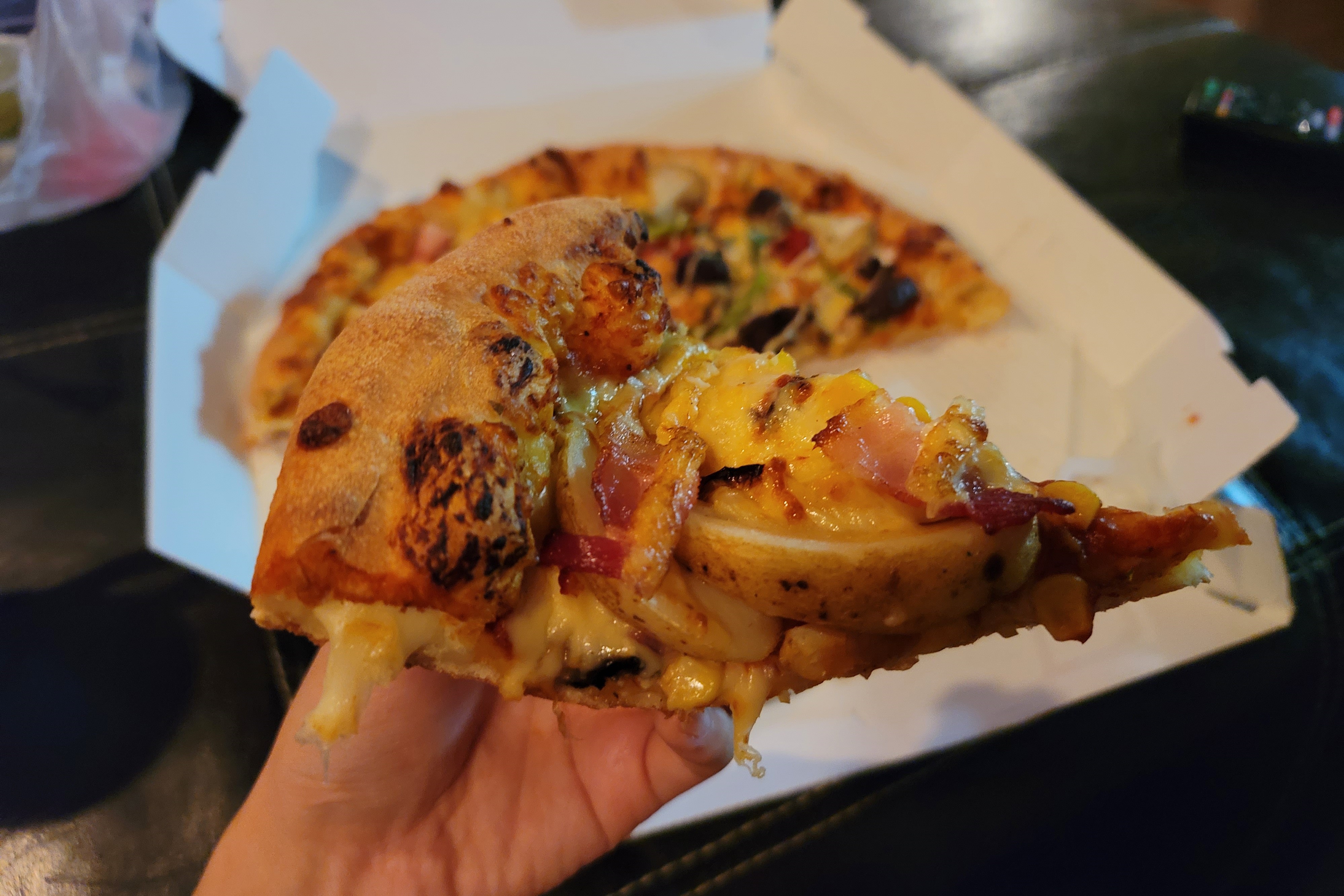 먹다 보니 이상함을 느꼈는데, 고기양이 적어도 너무 적다. 피자 한 조각당 고기 하나는 고사하고 고기가 아예 없는 조각도 있었다. 재료를 거의 소진했나 라는 생각이 들었다.