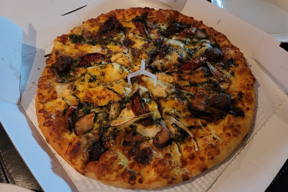 매번 어떤 피자를 주문할까 즐겁지만 귀찮은 고민 끝에 피자를 선택했는데 신제품이 나왔다고 해서 큰 고민 없이 신메뉴로 주문했다.