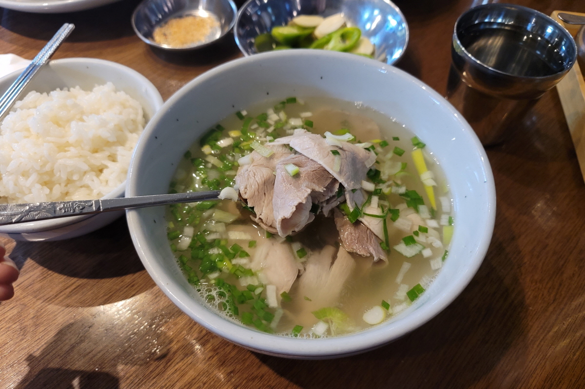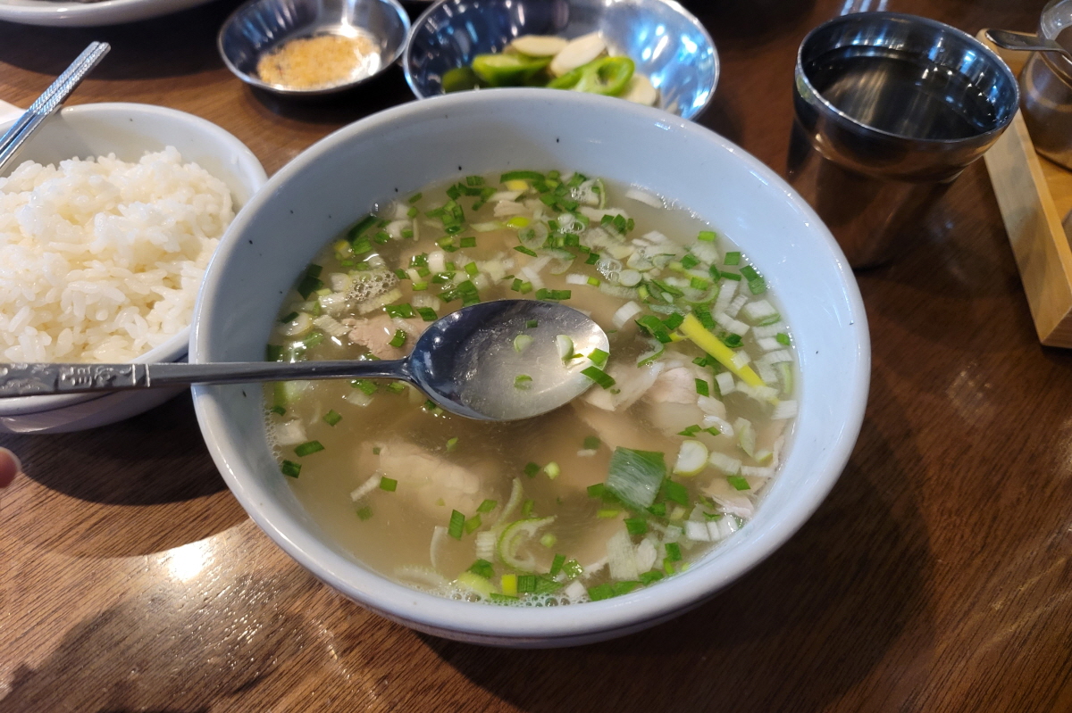 개인적으로 상에 올려도 오랫동안 보글보글 끓는 뚝배기 그릇에 담긴 국밥이 좋은데, 광화문 국밥은 적당히 보온 될 것 같은 두께감 있는 세라믹 그릇에 국을 담아주네요.