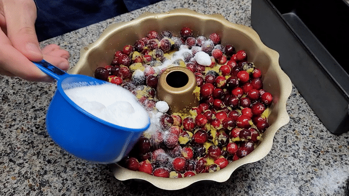 2. 엉클 루이스의 오리지널 레시피는 오렌지 과육이 아닌 제스트(오렌지 껍질)를 넣는데요, 조쉬는 껍질 대신 과육을 갈아서 크랜베리와 함께 오븐 팬에 넣었습니다.