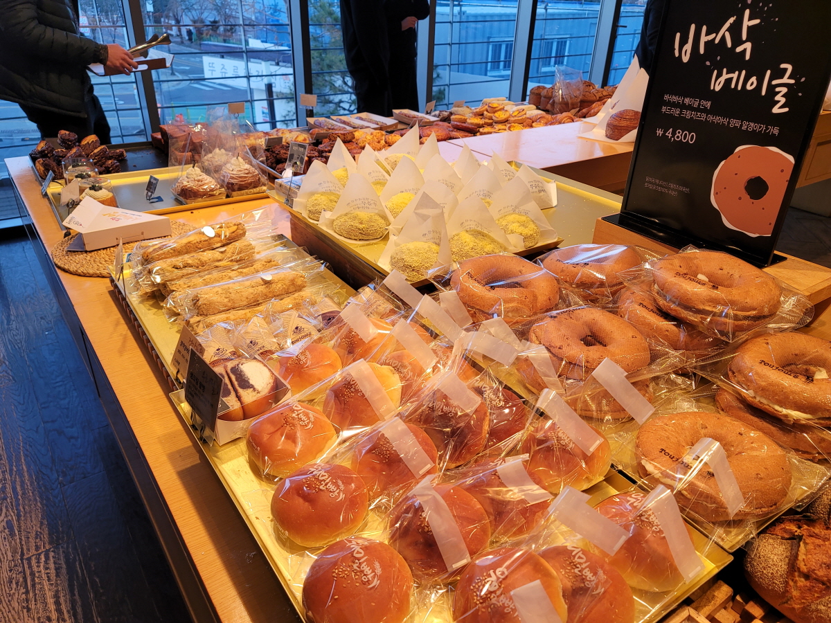2층에는 커피숍도 있습니다. 1층에서 구입한 빵을 커피를 함께 즐길 수 있어요. 코로나에도 커피숍은 언제나 만석인 것 같습니다.