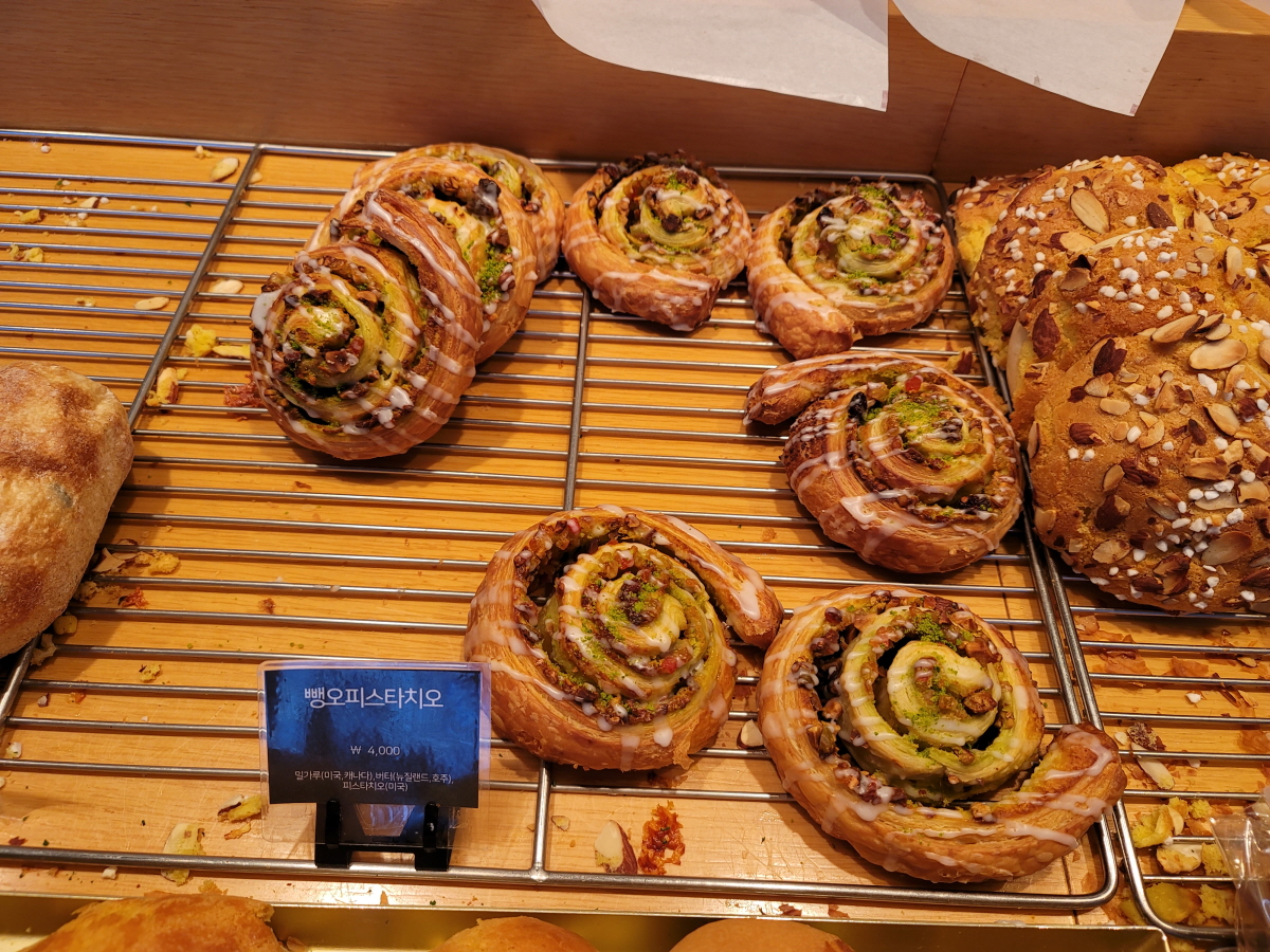 There are two famous chain bakeries in Korea: "Paris Baguette" and "Tous Les Jours." Both bakery brands seen across Korea sell higher quality bread and pasteries.