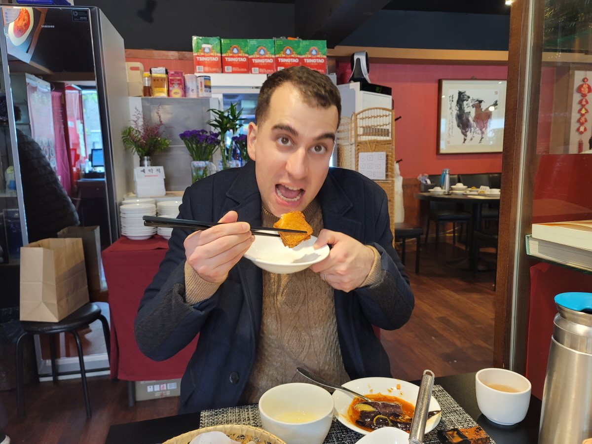 멘보샤. 머리로는 비싸다고 생각하지만, 가격 따위! 라는 생각이 들만큼 정말 맛있었다. 겉바속촉의 대명사로 명명해도 좋을 것 같다. 한입 베어 물면 바삭 소리가 나고 씹을 수록 촉촉한 새우를 즐길 수 있다. 갓 나온 멘보샤는 정말 뜨겁다. 뜨거운 걸 잘 못 먹는 조쉬는 조금 식힌 뒤에 먹은 멘보샤가 더 맛있었다는데 나는 원래 입 천장 까질 만큼 뜨거운 요리를 좋아해서 갓 나온 뜨거운 멘보샤를 입안에서 호호 돌려 먹는게 좋았다. 하지만 진진의 멘보샤는 적당히 식어도 바삭함을 유지했고, 새우의 육즙도 살아있다!