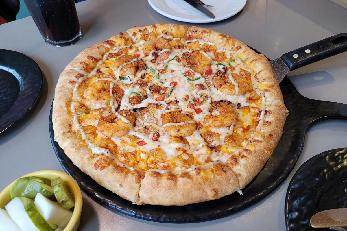 If you are a first visitor, I recommend Cheese crust Pizza or Pizza De Shrimp.