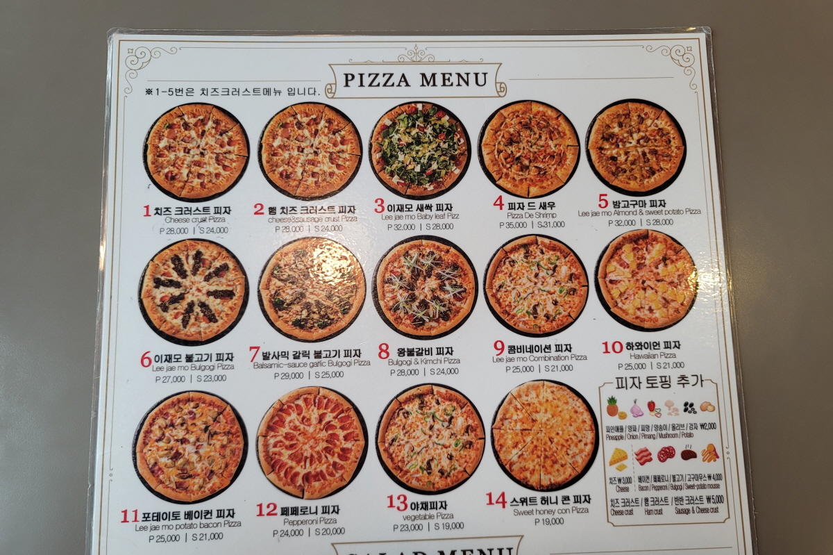 The specialty of Lee Jaemo's pizza is generous portions of high quality cheese rather than other ingredients. Sub ingredients like shrimps or bacons just help slightly flavor the pizza, but the main flavor is the thick, high quality cheese. That's why I am pretty sure no mater which pizza you order, you'll think, "Yes, I chose the right pizza!"