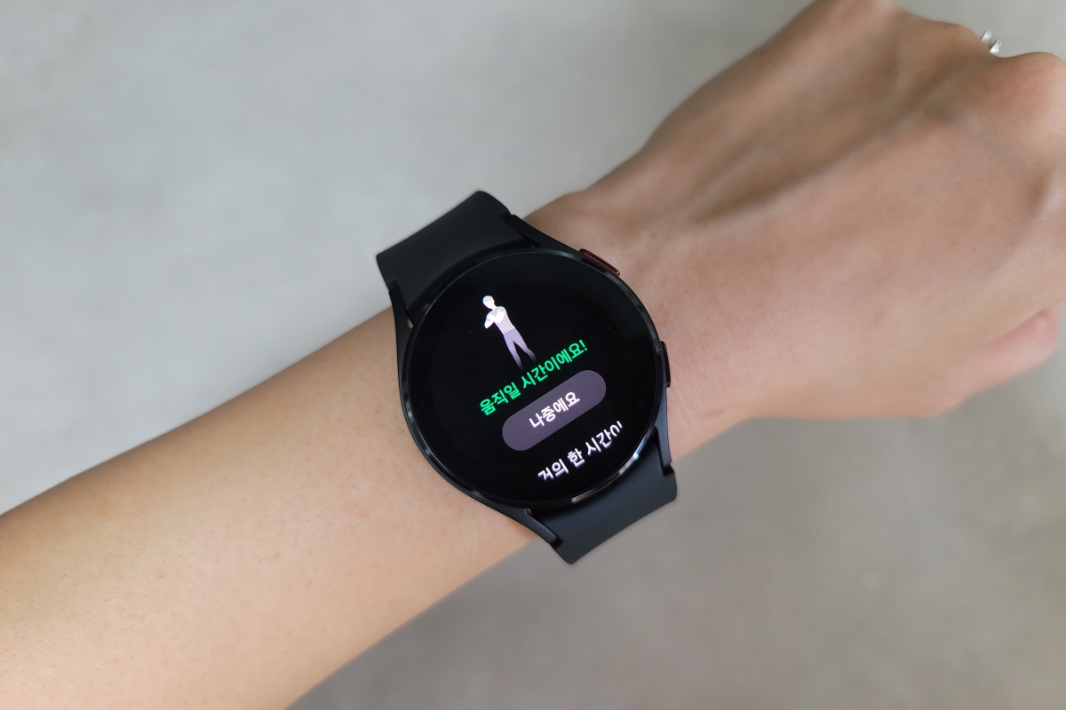 한시간 가량 움직이지 않았더니 스트레칭을 하라고 알람이 뜨더니 몸을 좀 움직이니 '좋습니다! 계속 움직이세요!'하고 칭찬 해준다. 그 뿐만 아니다. 나는 휴대폰 알람을 많이 맞춰 놓는데 휴대폰 없이 워치만으로도 바로 알람을 끌 수 있어 편하다.