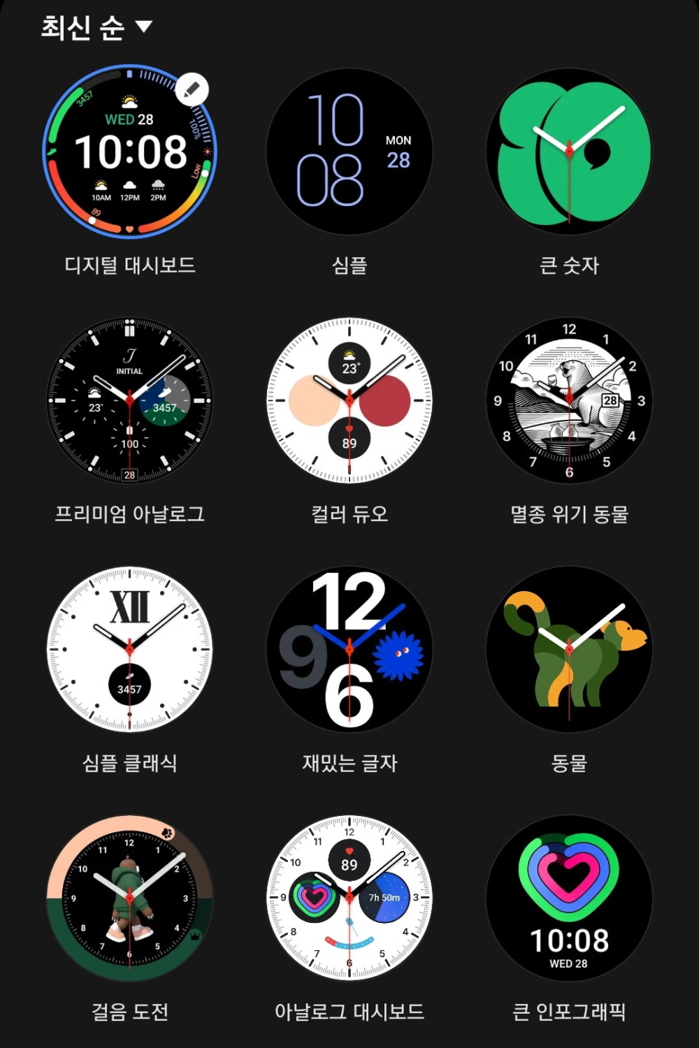왼쪽 사진처럼 시계 메인 화면을 선택할 수 있는데 나는 '디지털 대시보드'를 선택했다.