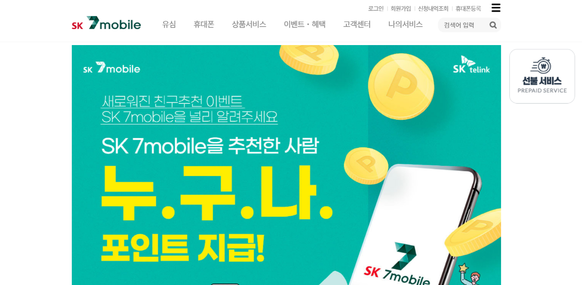 현재 진행중인 이벤트 중 SK세븐모바일을 추천한 사람에게 포인트를 지급해주고 있습니다.