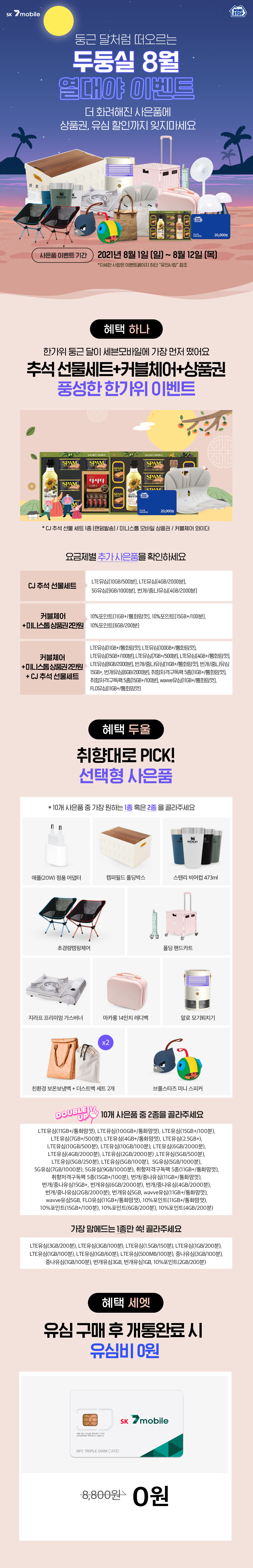 유심 배송 시간만 넉넉히 있었다면 그대로 유심을 신청하고 셀프로 개통하면 좋았겠지만 나는 당장 유심이 필요했다. SK세븐모바일 공홈에 다른 이벤트가 있나 찾아봤더니 미니스톱에서 유심을 구입할 경우 바로 유심을 사고 번호를 개통할 수 있을 뿐만 아니라 유심 비용은 향후 미니스톱 쿠폰으로 돌려주고, 위의 8월 혜택과 유사한 사은품을 제공한다고 적혀있었다. 그래서 두 번 고민하지 않고 미니스톱에서 유심을 구매했다.