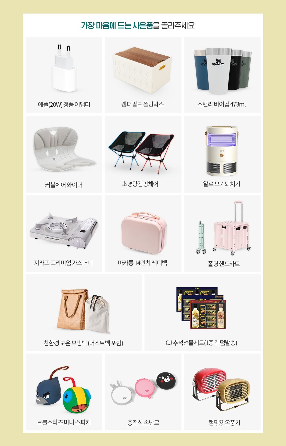 최근 급 캠핑에 관심이 생겨 그런가 내가 선택했던 사은품도 나름 캠핑과 관련있던 '알로 모기퇴치기'와 '지라프 프리미엄가스버너'였는데, 새로 생긴 사은품 중에 눈이 가는 것도 '캠핑용 온풍기'다. ㅋㅋ