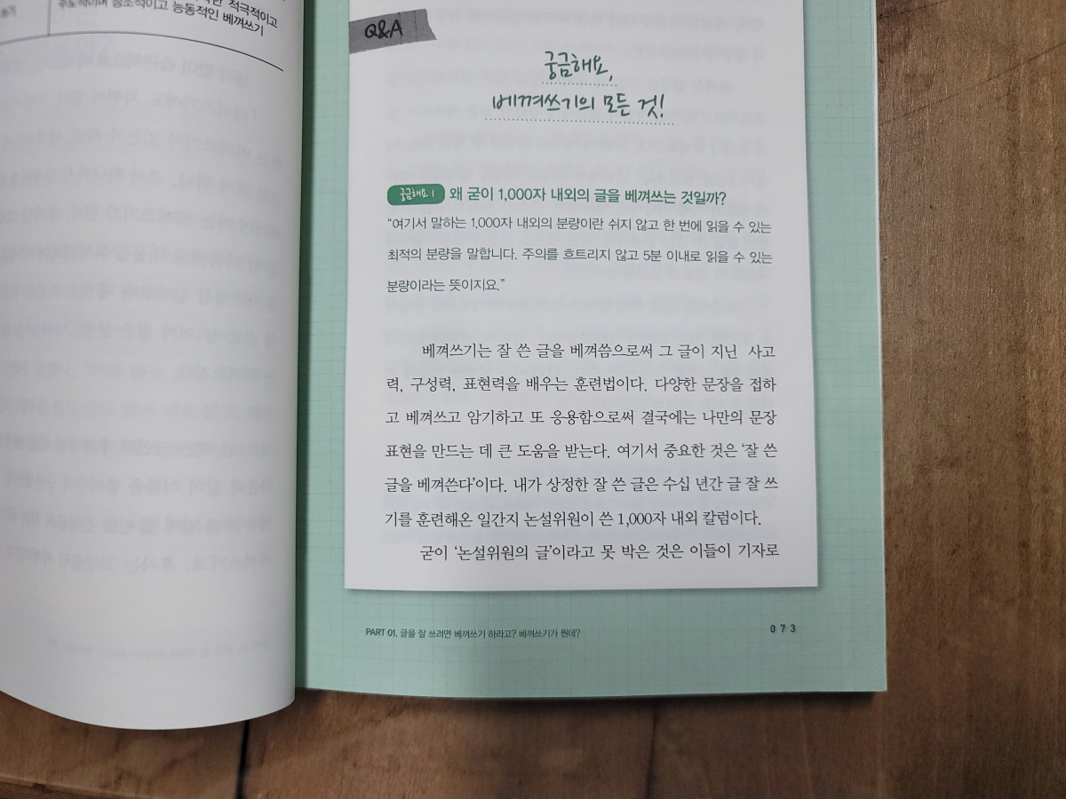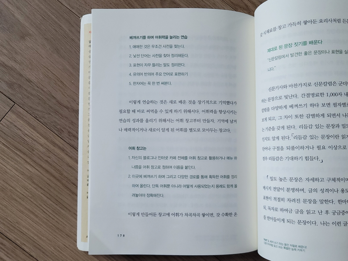 한 때 사설 베껴쓰기가 유행했기 때문에 나도 (결국 작심삼일로 끝났지만) 베껴쓰기를 했던 경험이 있다. 그런데 이 책을 읽고 보니 저자가 말하는 베껴쓰기는 내가 했던 무작정 베껴쓰기가 아니었다.