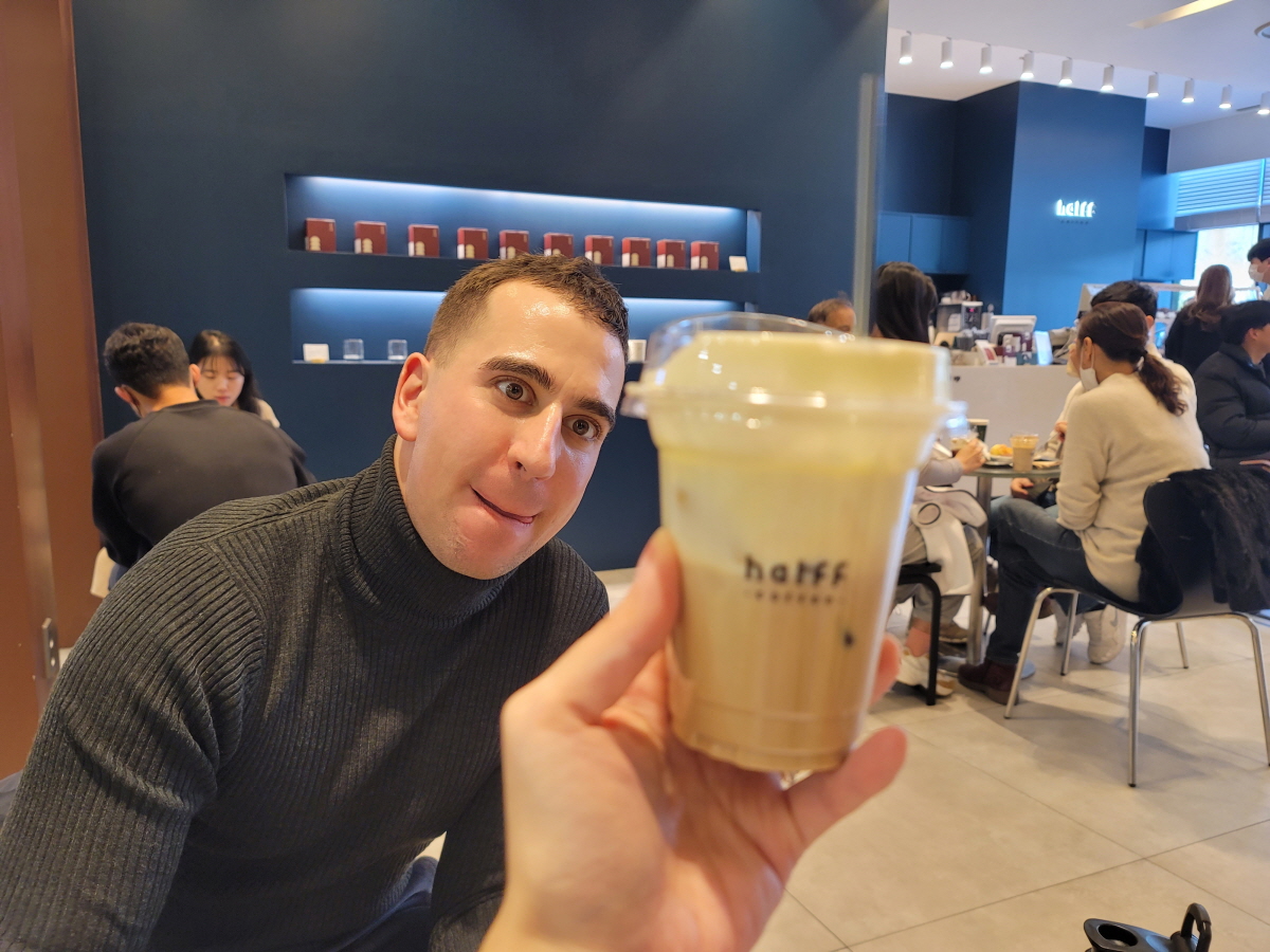 당시 평점만 보고 방문했던지라 하프커피가 체인점 인지도 모르고 '백화점 한구석(?)에 이런 특이한 커피를 파는 커피숍이 있다니! 대박이다!'라고 생각했는데 이미 맛 보증된 커피숍이었다니 ㅋㅋ