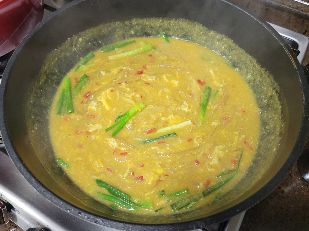 카레 속 계란 덩어리가 은근 맛있으니 계란을 곱게 풀 필요는 없다.