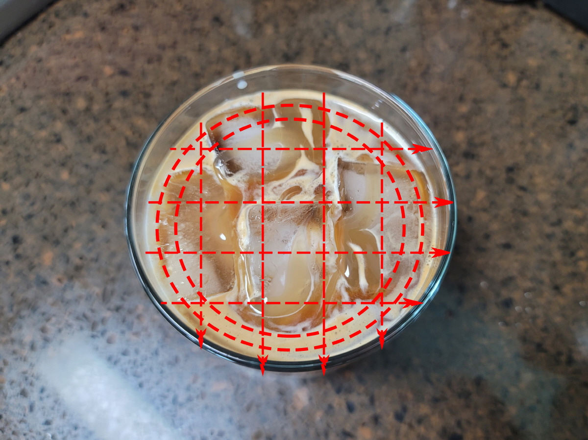 바닐라 시럽과 카라멜 시럽이 잘 섞이게 휘휘 잘 저어서 마시면