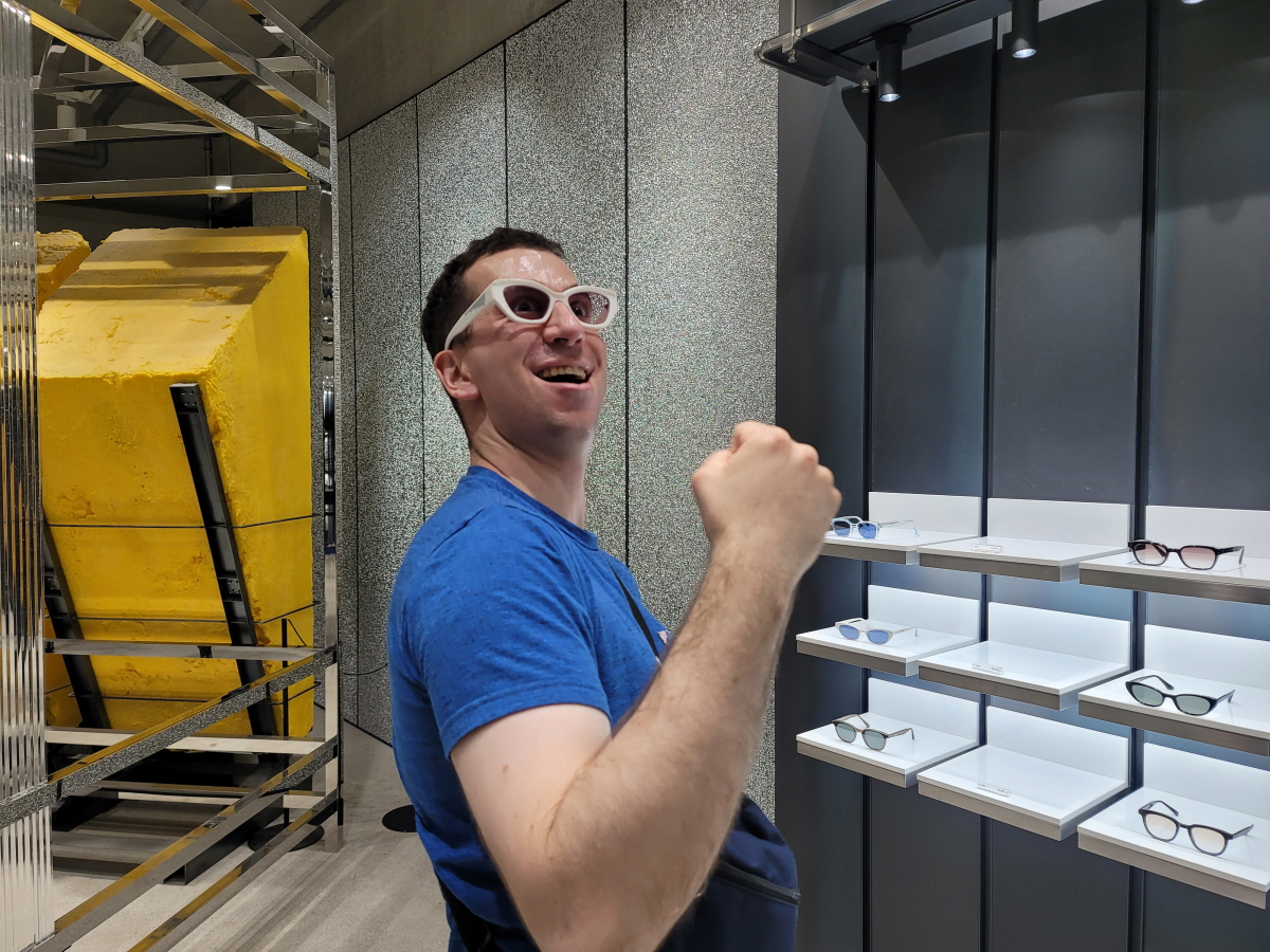 안경 알이 커서 아쉽게도 얼굴이 작은 조쉬에게는 어울리지 않았다.