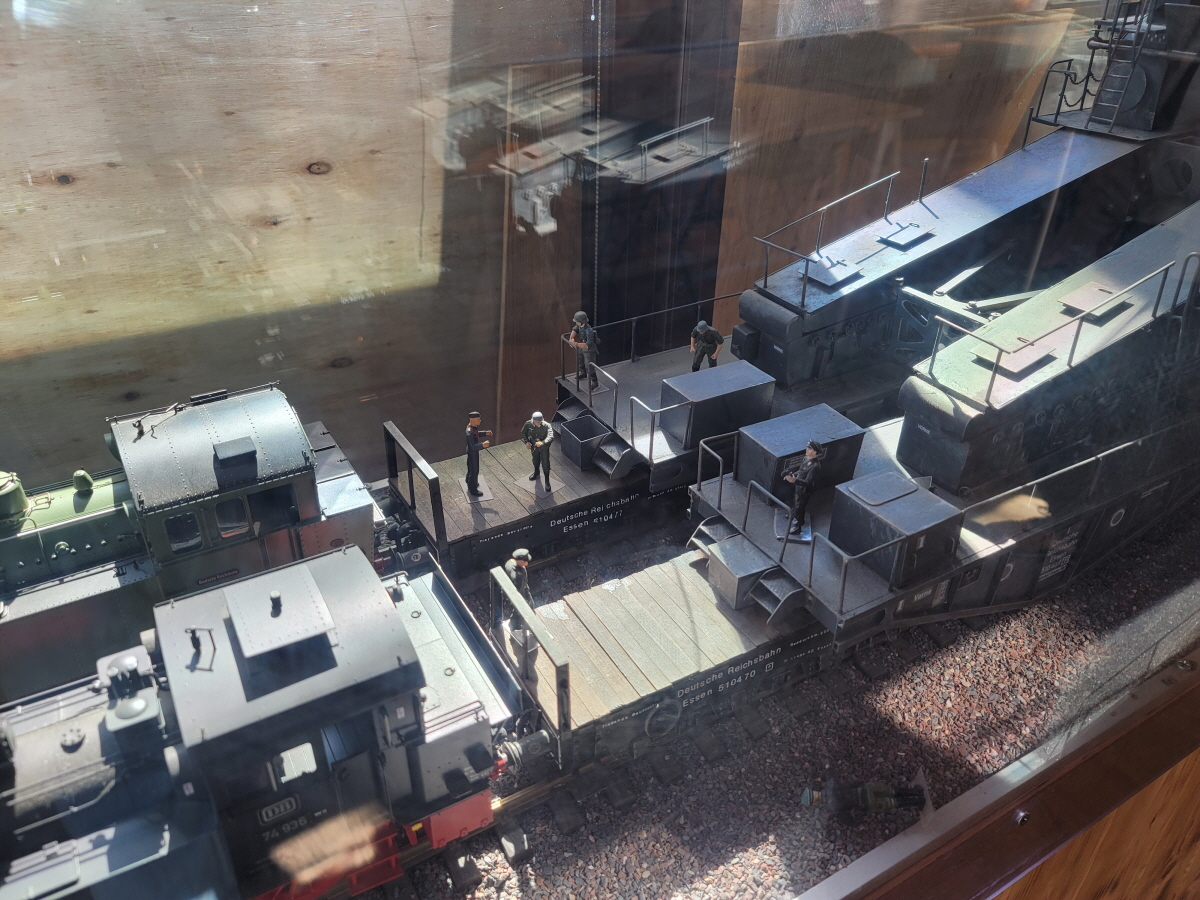 그곳에는 카페 관련 기사나 기차 모형들, 그리고 왠 뜬금없는 탱크 모형도 있었는데, 이는 일반 탱크가 아닌 '열차포'로, 레일 위에서 이동하는 화포라고 한다.