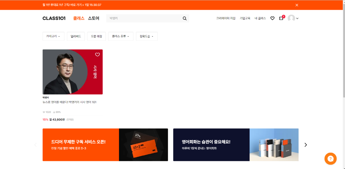 무제한 구독 서비스 신청 전에 원하는 강의가