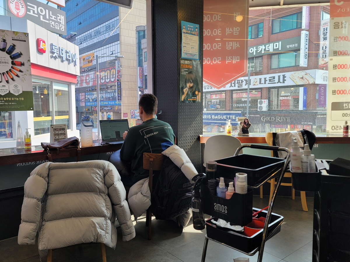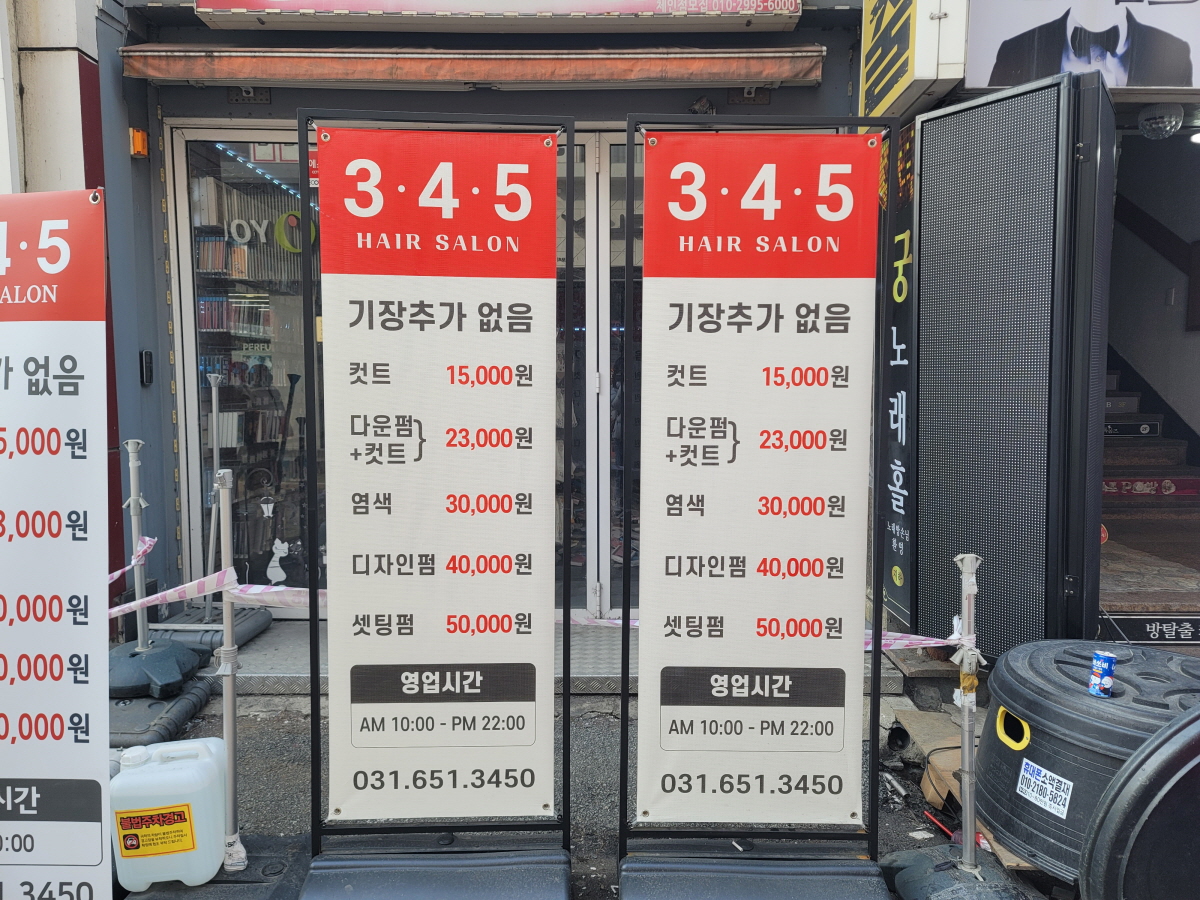 '기장추가 없음, 염색 3만 원' 입간판을 보고
