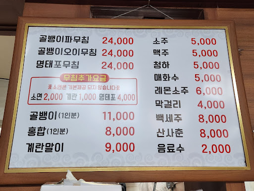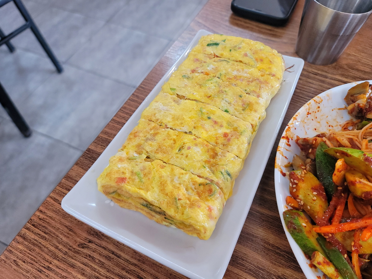 계란말이 추천이 많아서 우리도 주문했는데, 골뱅이 무침이 매운 편이라 매운맛을 중화하기 위해 추천하는 듯하다. 계란말이는 상당히 컸지만 특별할 것 없는 맛이라 가성비는 떨어진다. 여러 명 가는 게 아니라면 계란말이는 굳이 주문하지 않아도 될 것 같다.