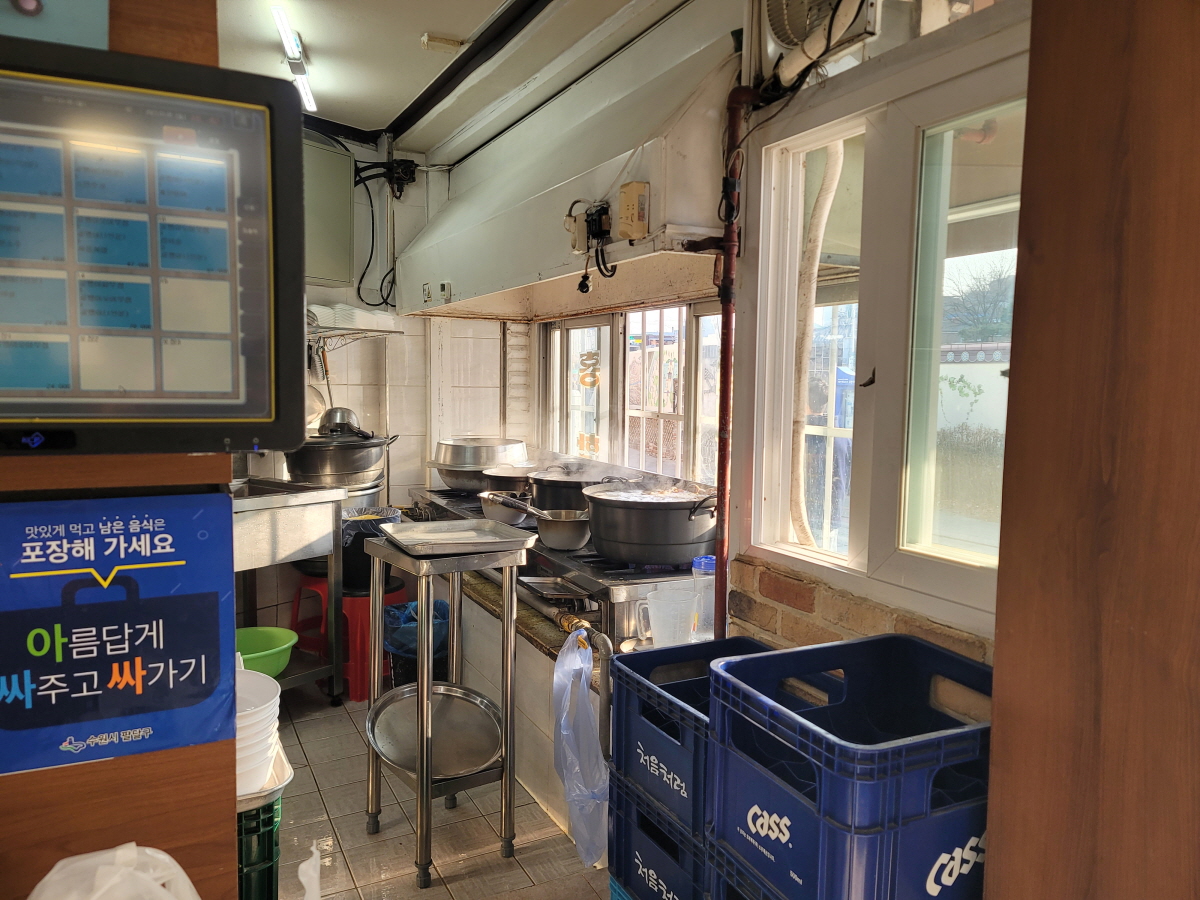 나름 오픈주방이다. 식사하는 내내 주방에서 사장님이 커다란 솥에서 골뱅이 삶고, 홍합탕 끓이는 모습을 봤다.