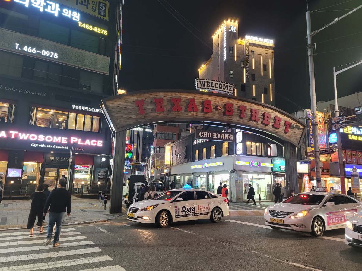 느릿느릿 걸어도 2분도 채 걸리지 않는 짧은 거리이기 때문에 어느 쪽 입구로 들어가든 상관은 없지만 길을 건너기 위한 횡단보도가 텍사스 거리 입구에서 가까우니 우리는 텍사스 거리로 들어갔다.