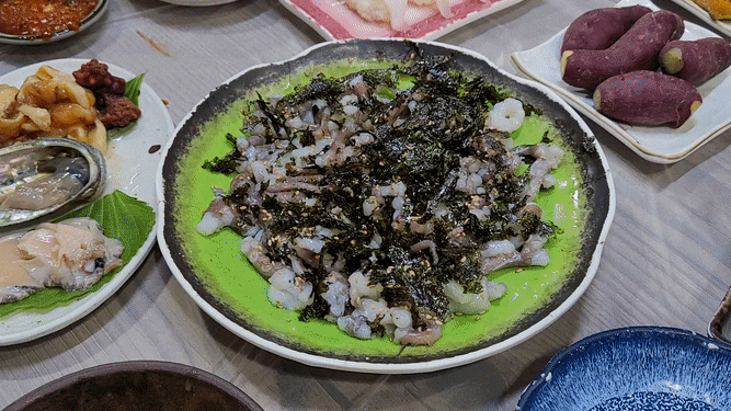 남편이랑 데이트할 때 어디서 산낙지 먹는 영상을 보고 온 남편이 경악하던 때가 떠오르네요. 다행히도 조쉬는 회도 잘 먹고, 산낙지도 잘 먹어요!