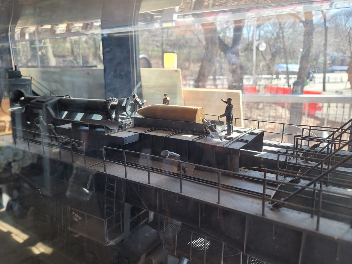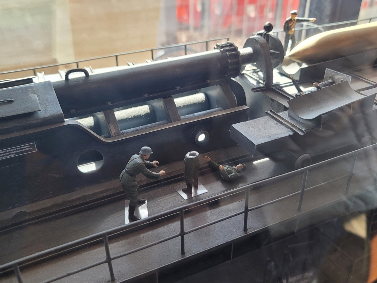 그곳에는 카페 관련 기사나 기차 모형들, 그리고 왠 뜬금없는 탱크 모형도 있었는데, 이는 일반 탱크가 아닌 '열차포'로, 레일 위에서 이동하는 화포라고 한다.