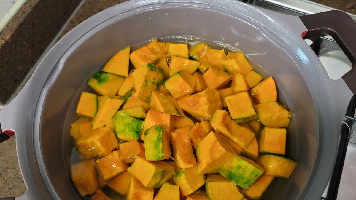 단호박이 잠길 만큼 물을 부은 후 끓입니다.